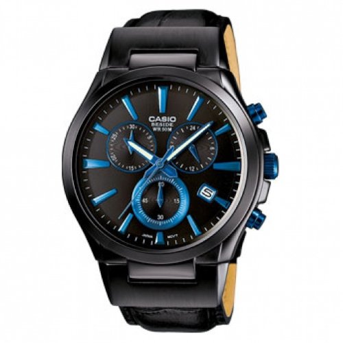 Genre : Homme - Style : Classique - Forme : Rond - Coloris : Noir - Matières : Cuir/Acier - Mouvement : Quartz - Étanchéïté : 5 atm - Verre : Minéral - Largeur : 43 - Épaisseur : 11 - - Informations techniques : ChronographeRead more Casio - BEM-508BL-1AVEF - Collection - Montre Homme - Quartz Analogique - Cadran Noir - Bracelet Cuir Noir